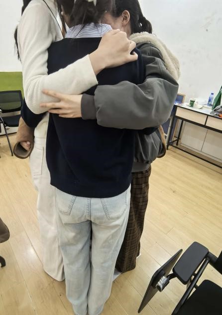 接下来的活动分为“人体字母”、“同舟共济”和“众志成城”三个环节。这些活动的让教室内欢声不断,同学们从最初的拘谨走向默契配合,打破了组内的一些隔阂,培养了团队协作互助的能力,也为后续的交流等活动奠定了良好的基础。